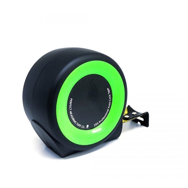 Professional quality 25ft auto-locking steel tape measure with easy-read fractions and wide-read numbers, 1/32 inches for the first foot and 1/16ths for the remainder. Rubber-coated case for no-slip grip and nylon-coated steel blade for extra durability. Auto-locking mechanism released with conveniently located thumb button on top side of case. Length: 25ft; Width: 1″