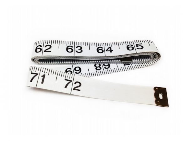 White vinyl-coated fiberglass tailoring tape with inches (down to 1/16ths) on both sides. Length: 72″; Width: 16mm