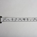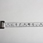White ABS plastic case and BMI calculating wheel with a retractable 60″ fiberglass measuring tape and metal tab/buckle. Length: 60″/1.5m; Width: 13mm