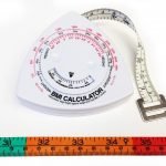 Calculate body mass index (BMI) easily and accurately using this tape measure with built-in BMI calculator wheel. Simply match your height to your weight on the wheel to reveal your BMI number. Then use the flexible retractable tape and looped endpiece to measure body circumference. Color-coded sections indicate underweight, healthy, overweight, and obese body types. The tape features both inches and metric graduations and measures up to 60″ (in 1/8ths) or 1.5m on both sides of the tape.